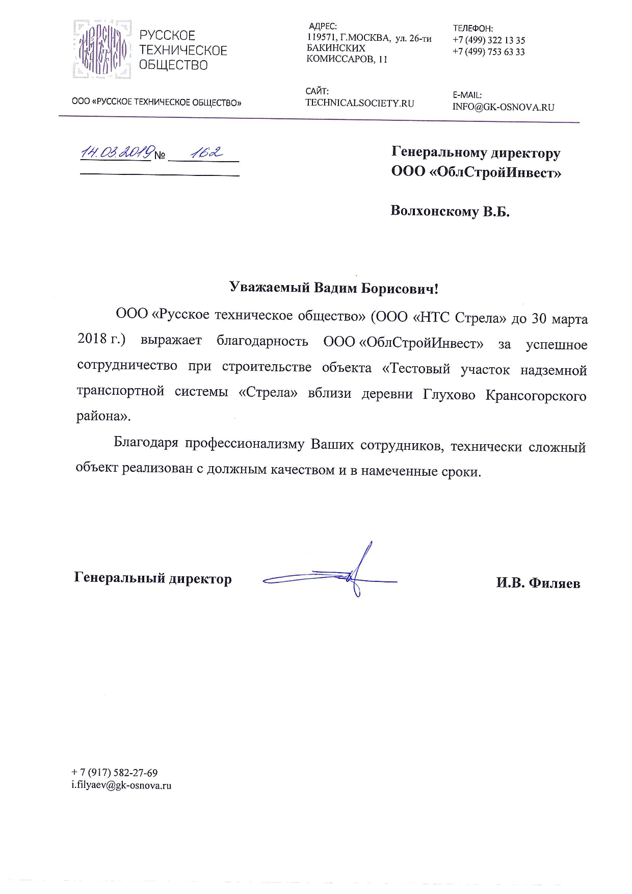 ООО «ОблСтройИнвест» в реализации инвестиционного проекта.